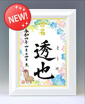 デザイン命名書 A4ホワイト額 男の子用【毛筆手書き】